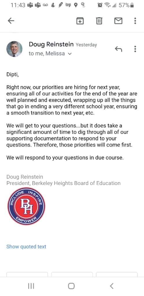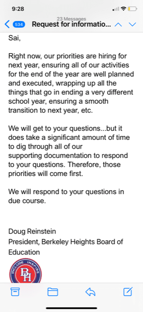 As indicated by your response at the BOE meeting on April 29 2021 the Board of Ed members role is advisory and consultative to provide oversight. So why are you getting involved in day to day administration and operations by responding to questions addressed to Dr.Varley?