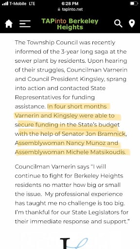 It seems clear to me that Mayor Devanney is the one who worked with New Jersey State Senate President Nick Scutari to help get what Berkeley Heights needed. Truth matters. Honesty matters. Leadership matters.