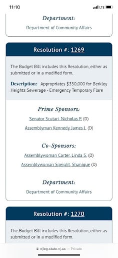 How do I know this? I went to the State Budget website, entered “Bramnick, Jon” and received the message “No Resolution found.” I encourage residents to visit the website and see for yourselves.