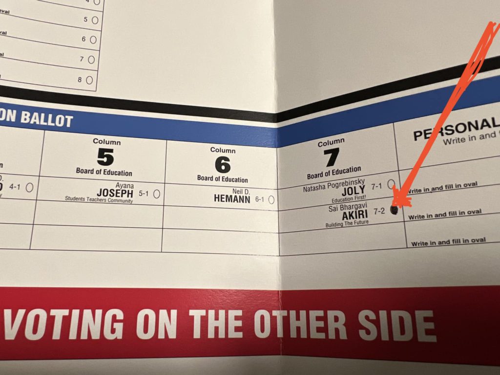 Sai Akiri is in a terrible ballot position – 7-2 – so please pay attention and vote with your head and heart.