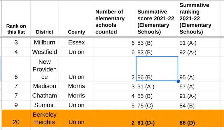 BERKELEY HEIGHTS HAVING THE HIGHEST PER-PUPIL COST WITH THE LOWEST RANKINGS MAKES SENSE