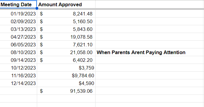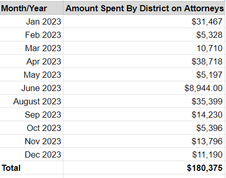 Our favorite law firm, Cleary, Giacobbe, Alfieri, and Jacobs, hit the 90K mark this month, taking in 50% of the District’s spending, which totaled ~180.000 according to Bill Lists from 1/2023 Through 12/2023. The firm surpassed the entirety of the District’s legal expenditure for the fiscal year before Dr. Varley’s tenure this October.