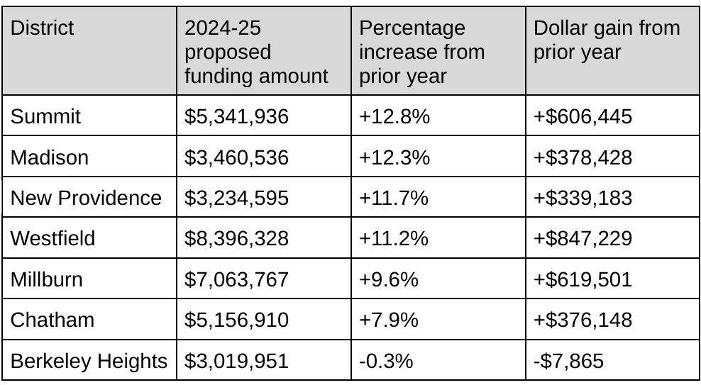 Following the Governor’s budget address with a proposed increase of more than $901 million for public schools, Berkeley Heights Public Schools is receiving slightly lower proposed state aid in the 2024-25 school year than this current 2023-24 school year.