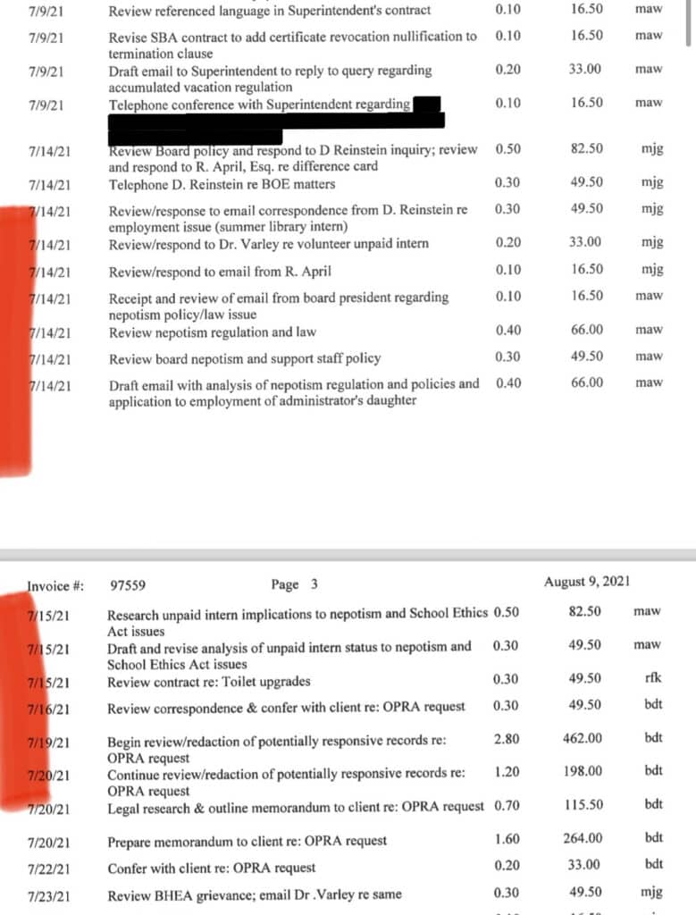 Instead of providing this information, the District made the decision to engage in a lawsuit that spanned 18 months. The same attorneys who prepared and redacted the bills (billable hours) for the original OPRA request were the same attorneys defending the District in the months-long litigation.