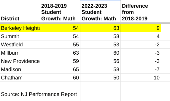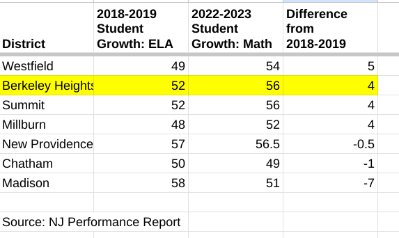 In ELA, Berkeley Heights met the standard with a slight increase from 2018-2019.