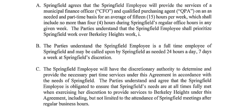 Given that the Township was dinged with Audit findings last year and the allegations put forward by the prior CFO – is a part-time CFO who has Berkeley Heights as a lower priority really the best choice for our township?