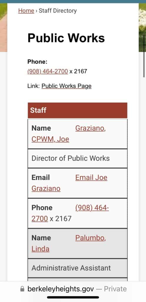 Now it’s unclear if Mr. Joseph Graziano continues to work for the Berkeley Heights township currently but his name still appears on the roster of personnel for Berkeley Heights township.