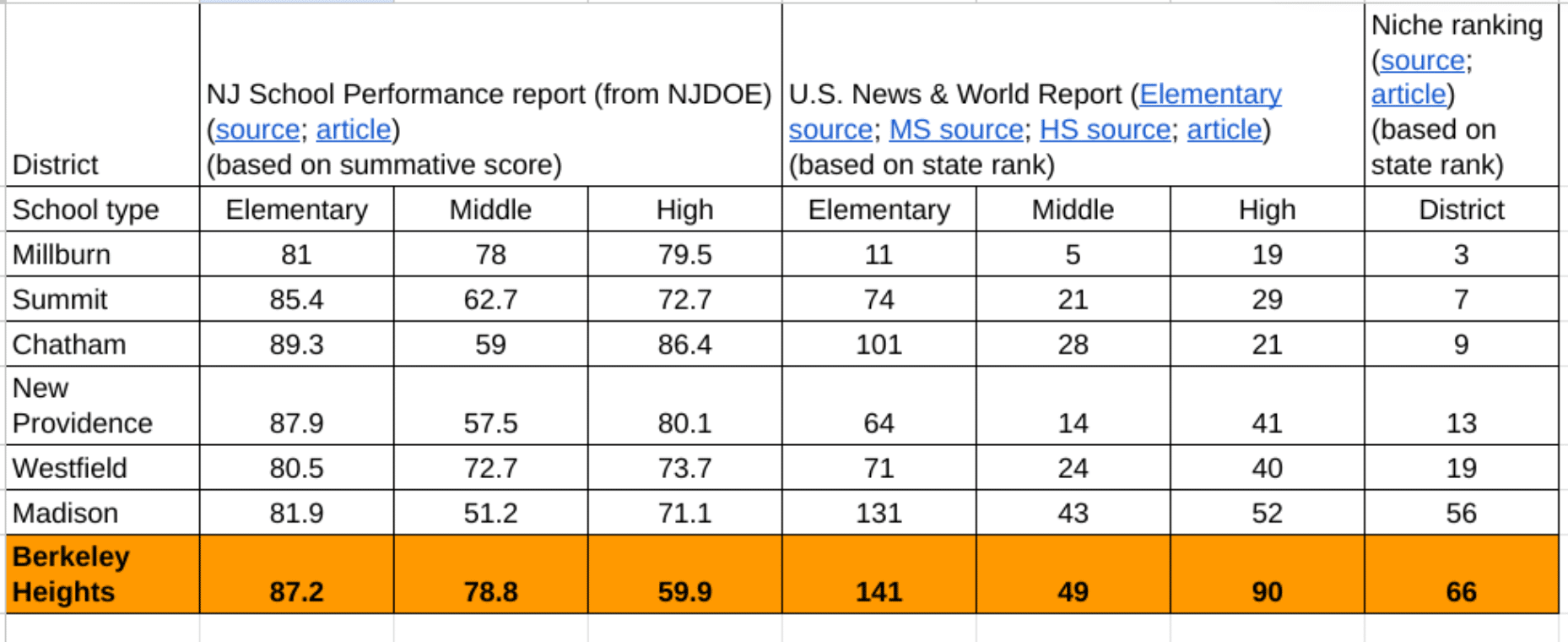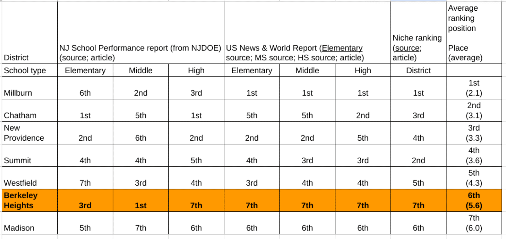 Exploring how Berkeley Heights ranks sixth out of seventh in summary of school rankings…and how to improve them