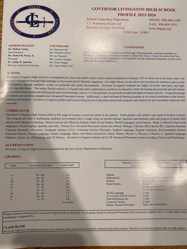 These are screenshots of Governor Livingston’s Profile Brochure which demonstrates a 4.5 Unweighted scale.