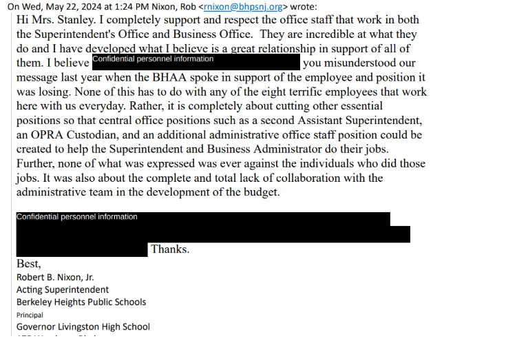 What happens next raises concerns. Stanley forwards her email exchange with Nixon (the acting Superintendent) to several BHPS employees.