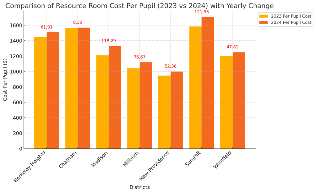 Special Needs Per Pupil Cost Break Down for Berkeley Heights, Chatham, New Providence, Summit, Millburn, Madison, and Westfield