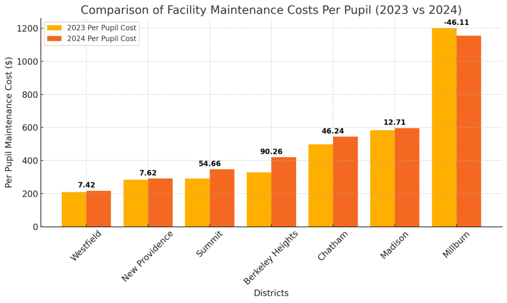 Berkeley Heights experienced the most significant increase, with per-pupil costs rising by $90.26.
