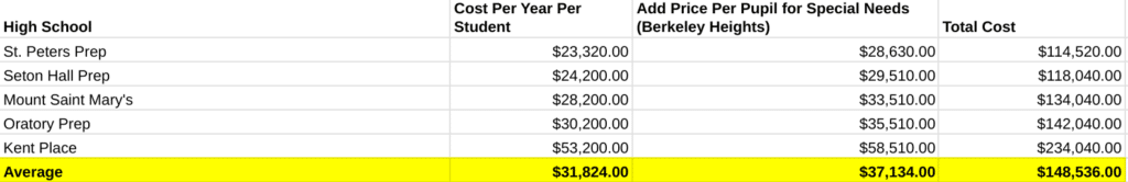 Given the high per-pupil cost of Berkeley Heights Public Schools (BHPSNJ) and ongoing discussions about declining enrollment despite rising expenses, I wanted to end the 2025 Budget series by seeing how BHPSNJ stacks up against private schools in terms of cost.