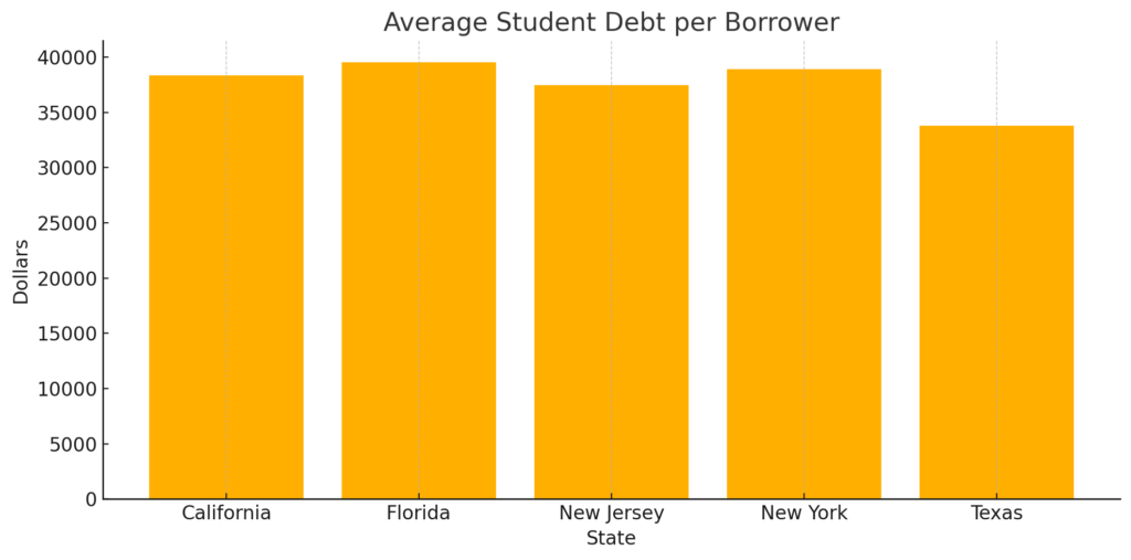 When it comes to student debt, New Jersey paints a complicated picture—one that’s often overshadowed by larger states like California and Texas. While New Jersey has significantly fewer borrowers overall, the average burden each borrower carries is among the highest in the country.