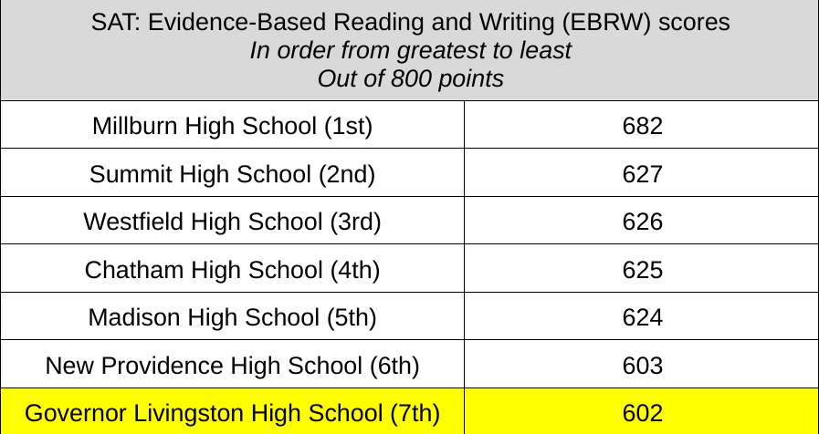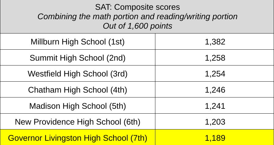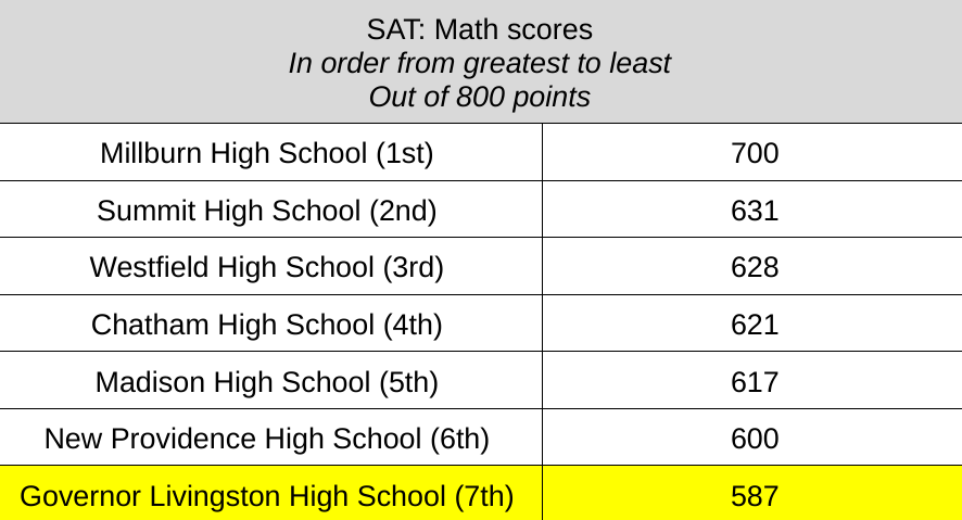 Millburn on top while Berkeley Heights behind neighboring districts in SAT Math, Reading & Writing