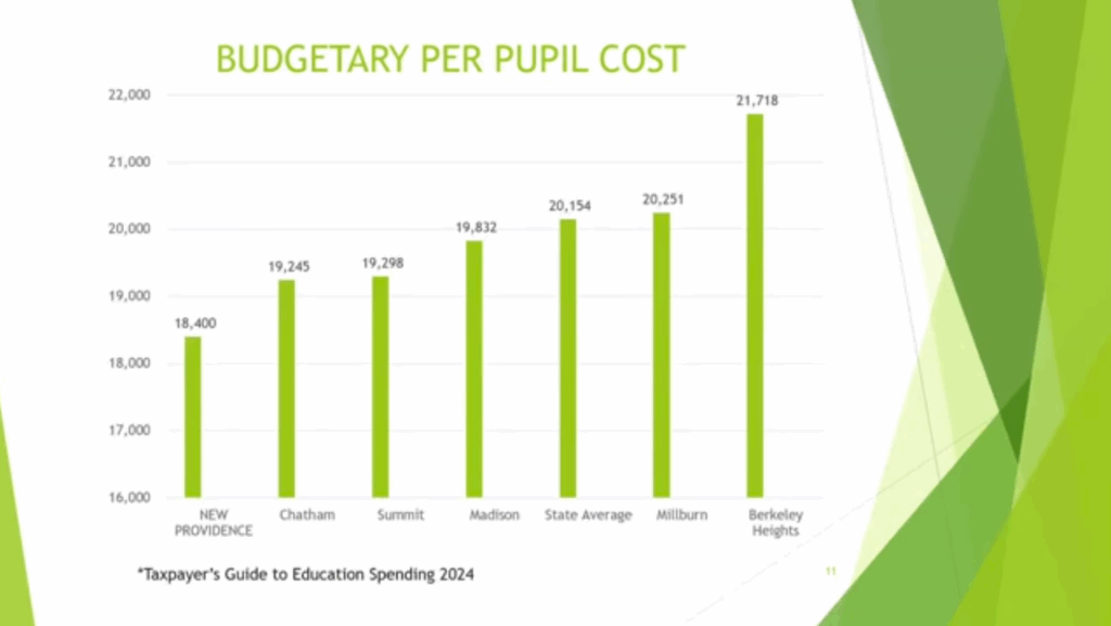 Some quick snapshots from the spreadsheet are below but before we get started on that it might be good to point out a slide from the New Providence BOE Budget Meeting. Notice their slide and how it aligns with the Districts we include in our Dashboard. It’s good to see New Providence hold themselves to similar Districts versus cherry picking cosmetic options. It’s also good to see that their District respects their families enough to offer these comparisons to other schools as a means of giving them an evaluation point. Neither of these were present during the BHPSNJ Budget presentation.
