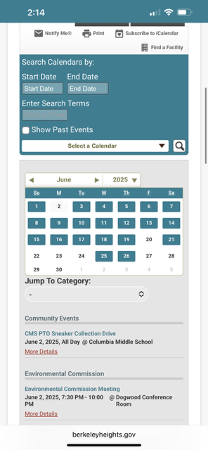 Given the Recreation Commission’s role in overseeing the project, and their function as an appointed body, questions have also been raised about whether proper notice was provided under New Jersey’s Open Public Meetings Act (OPMA). As of the June 2 calendar snapshot, no Recreation Committee meeting was publicly listed aside from the Environmental Commission session.