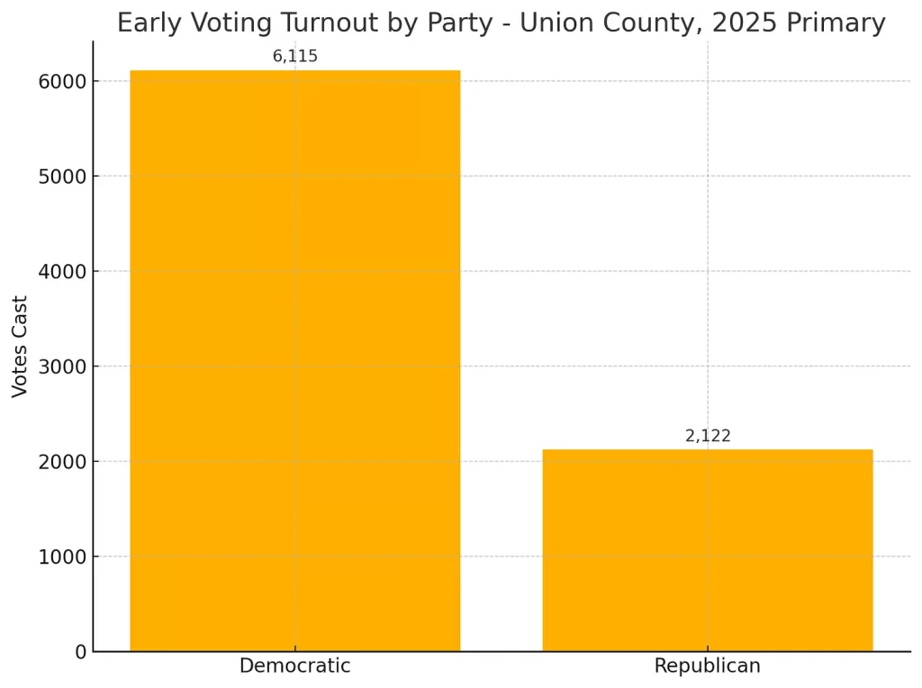 Mikie Sherrill led the Democratic totals in Union County, pulling in 7,324 total votes and performed well across all three voting methods.