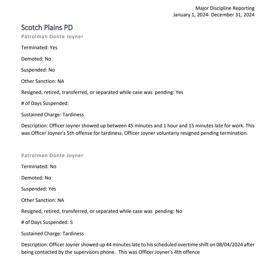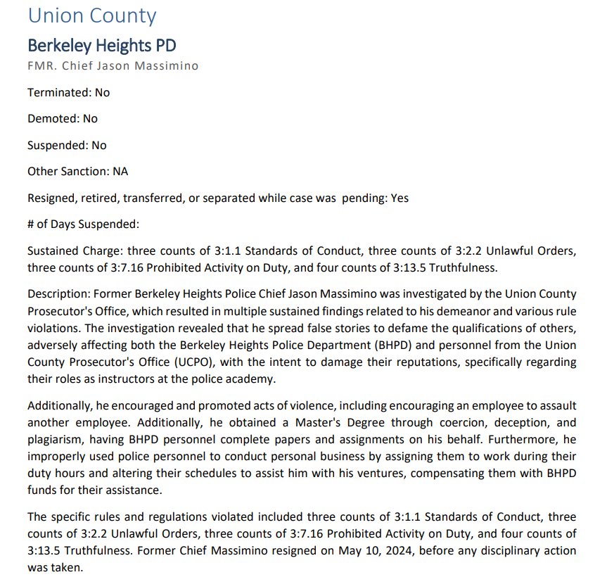 Earlier this week, the New Jersey Attorney General released its 2024 Major Discipline Report, which included Berkeley Heights.