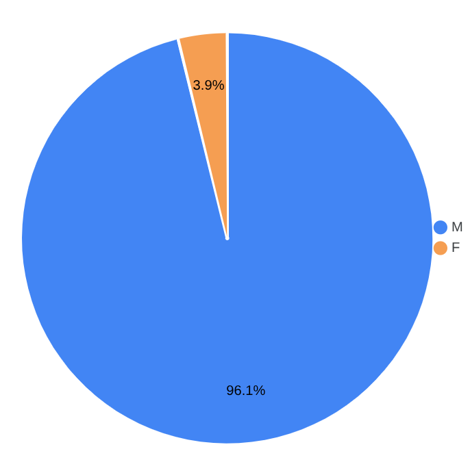 Men make up more than 96% of the prison population. Women account for just under 4%.