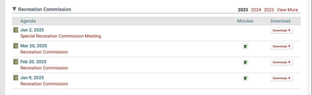 As of today , the minutes from this meeting are not available on the Township website. The next published Recreation Commission meeting is scheduled for September 18.