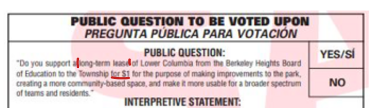 In it’s tax-funded press release encouraging voters to approve the agreement the Berkeley Heights Recreation Department stated: