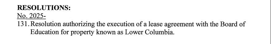 On March 4, 2025, the Council passed a resolution authorizing the Mayor to sign a Lease Agreement for Lower Columbia Field.
