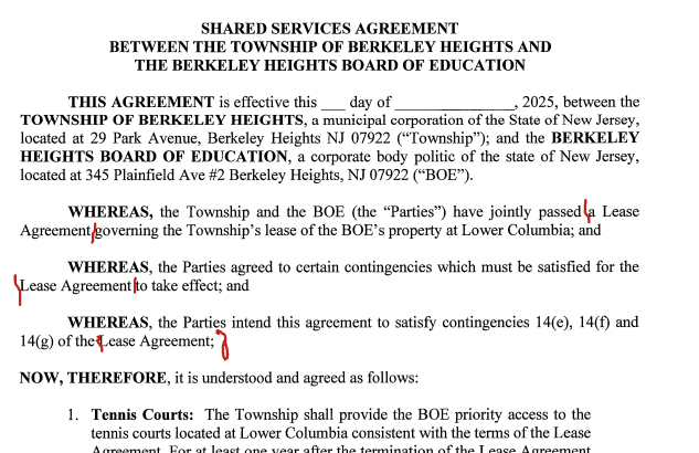 After months of NJ21st trying to get a clear answer on the legality of the CMS lease agreement, Berkeley Heights Town officials have now taken the position that what they actually approved was a Shared Services Agreement.