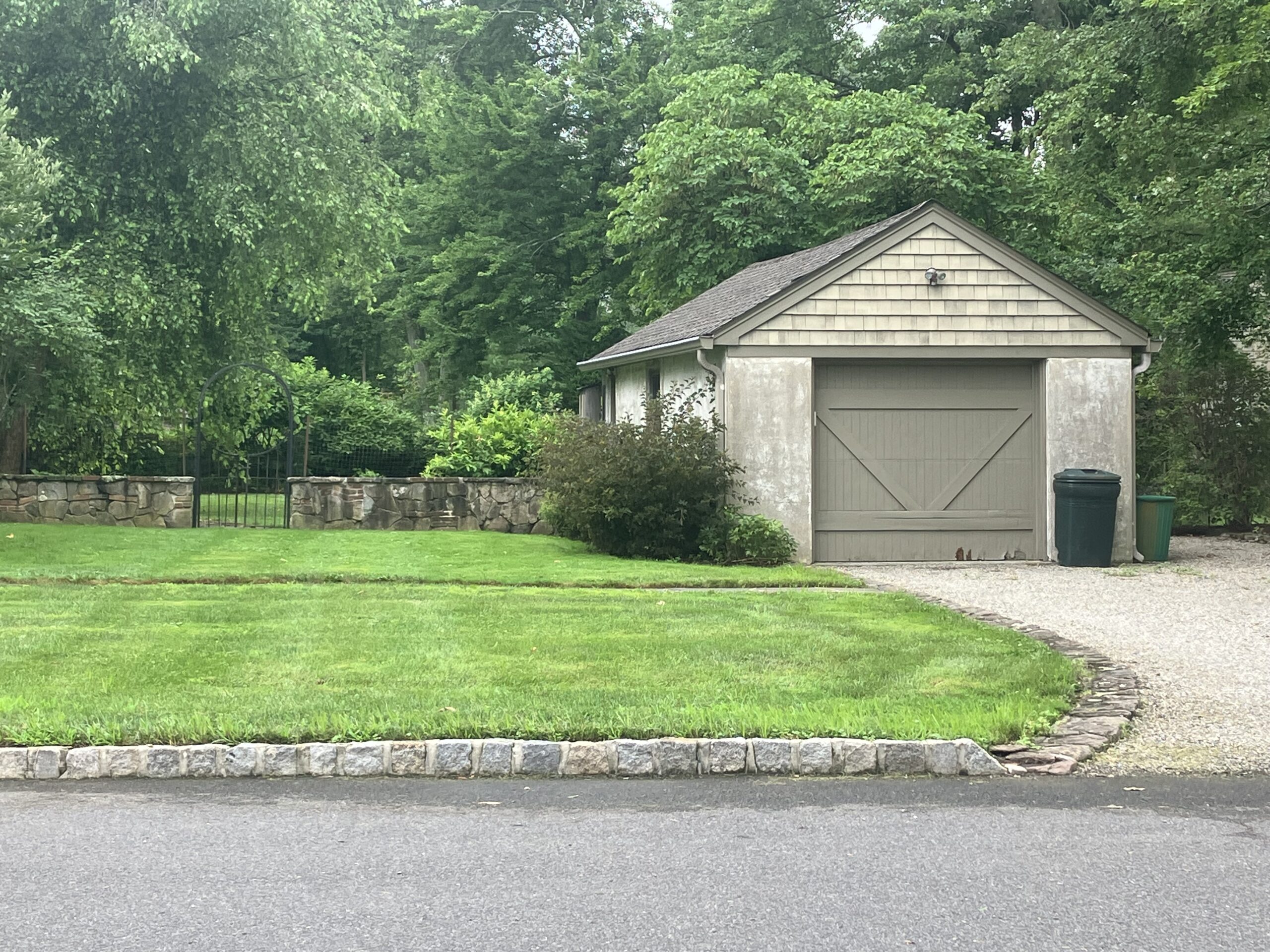 Between the house and garage is a beautiful stone and brick wall with an iron gate that leads to the backyard. A mix of small plantings, shrubs, and mature trees lend a sense of privacy to the lot without overshadowing this quaint beauty of a house. What a treasure!