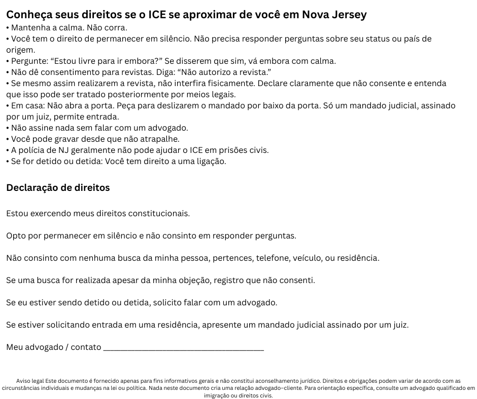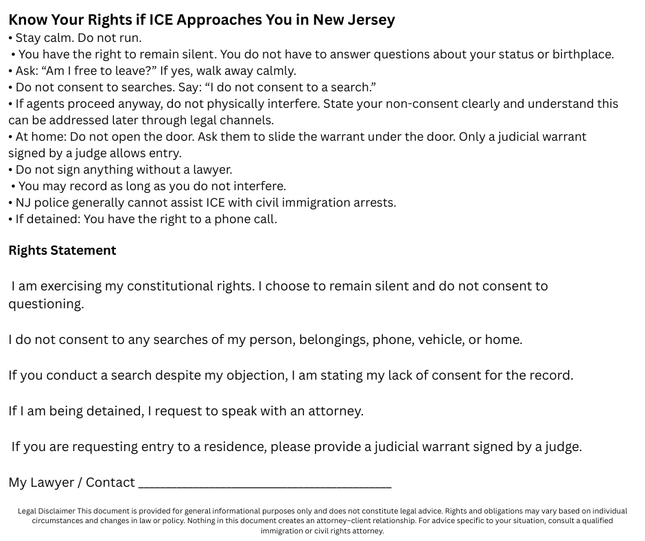 Regardless of your immigration status, you have important protections under the US Constitution and NJ law in your encounters with not only ICE but Law Enforcement in general.