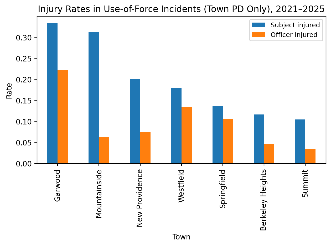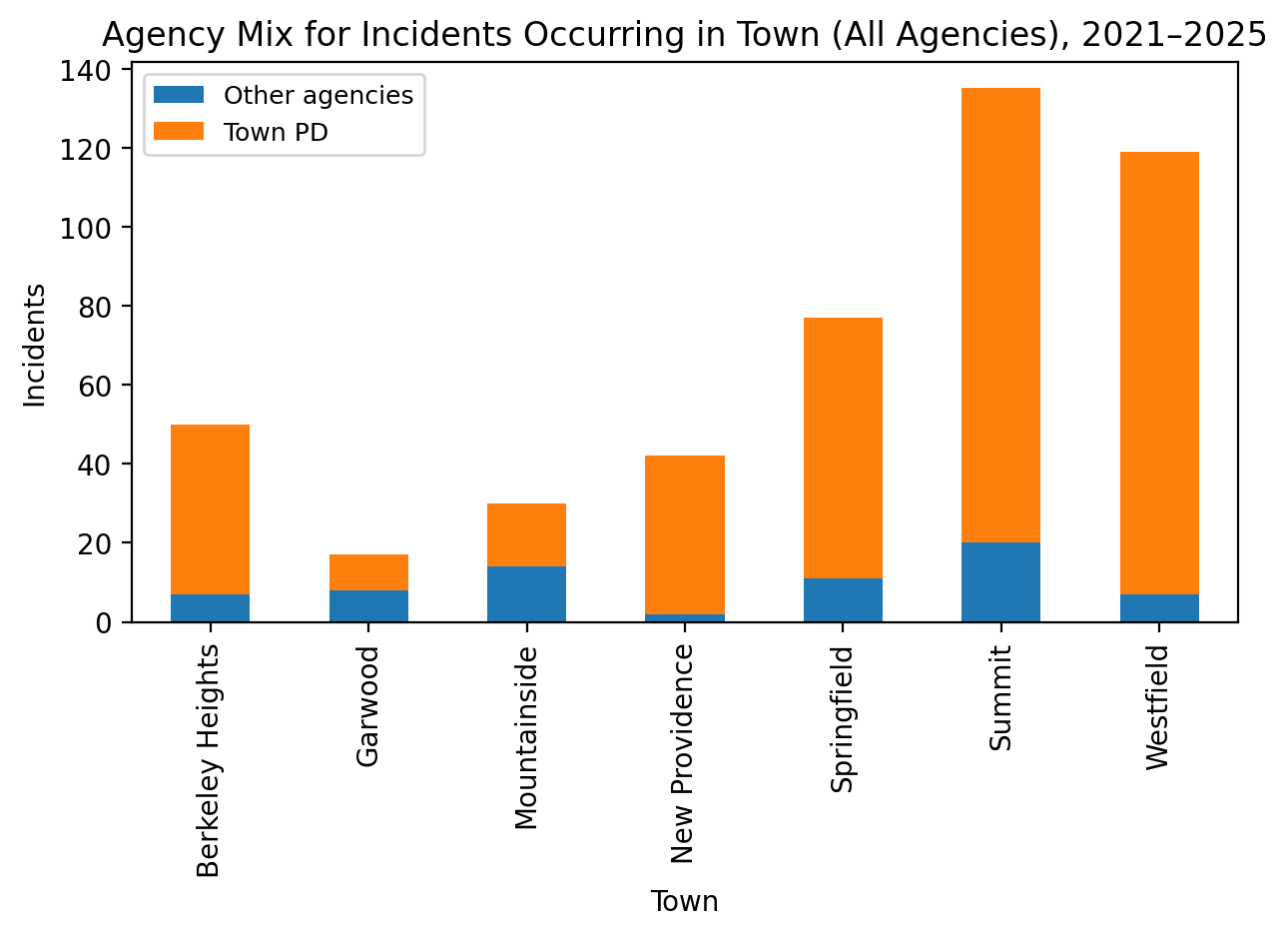 In future reporting, we may treat Mountainside and Garwood as a separate small-town comparison group because low incident counts make rates more volatile and require cautious interpretation.